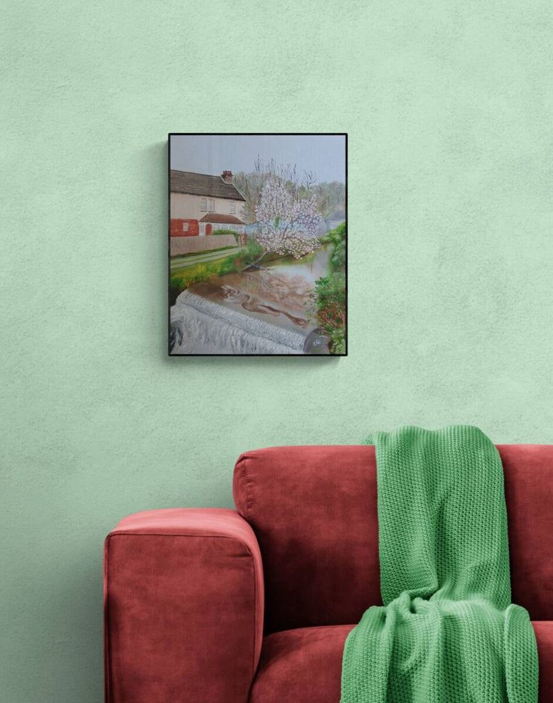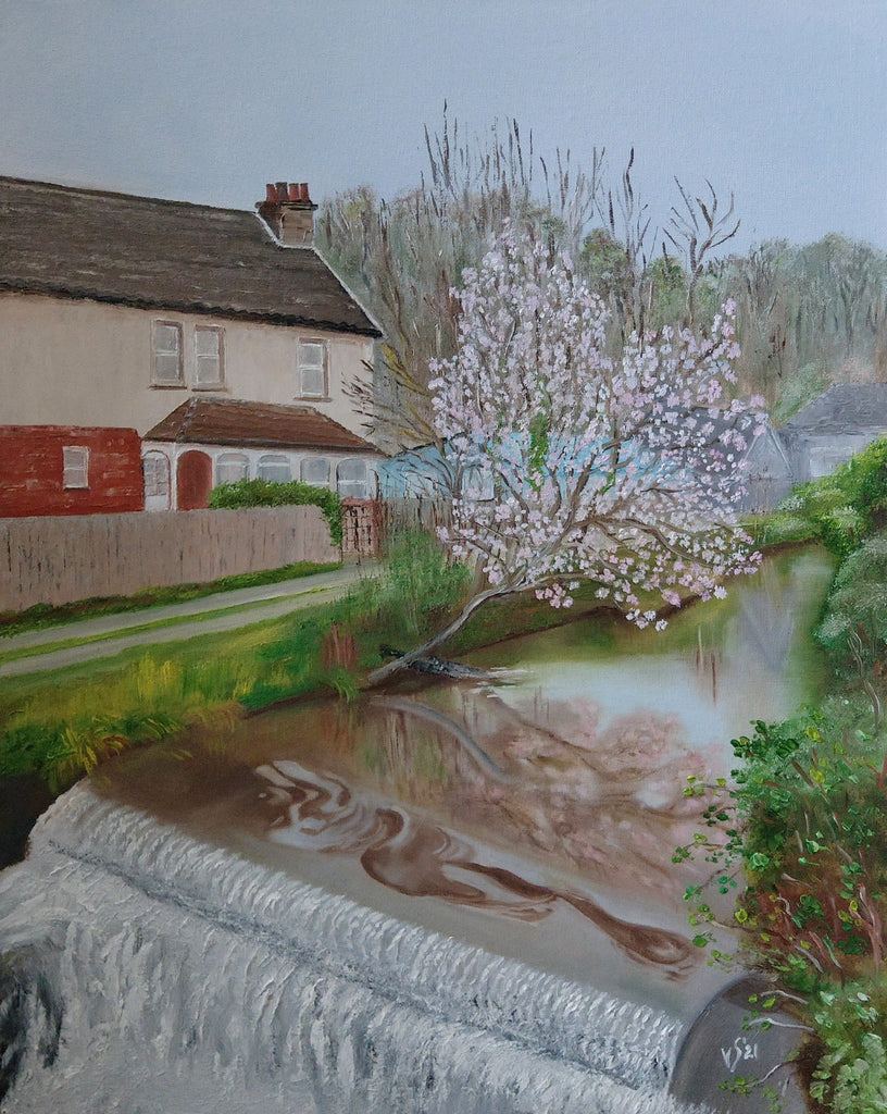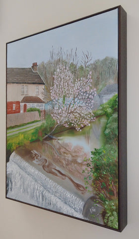 "Spring" in Lyme Regis, River Lim Path. Original oil painting on canvas board 16"x20". Framed.